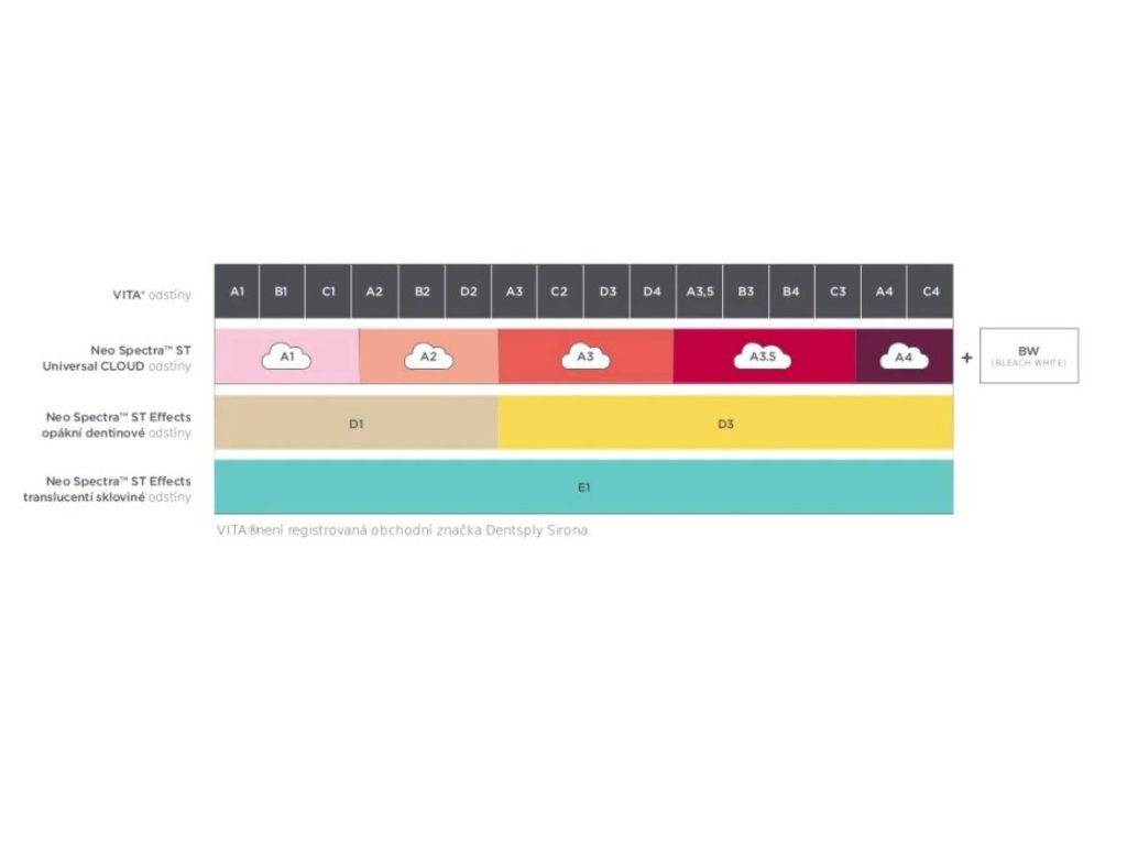 - Geniálně jednoduchý systém odstínů-5 odstínů pokrývajících celou řadu VITA