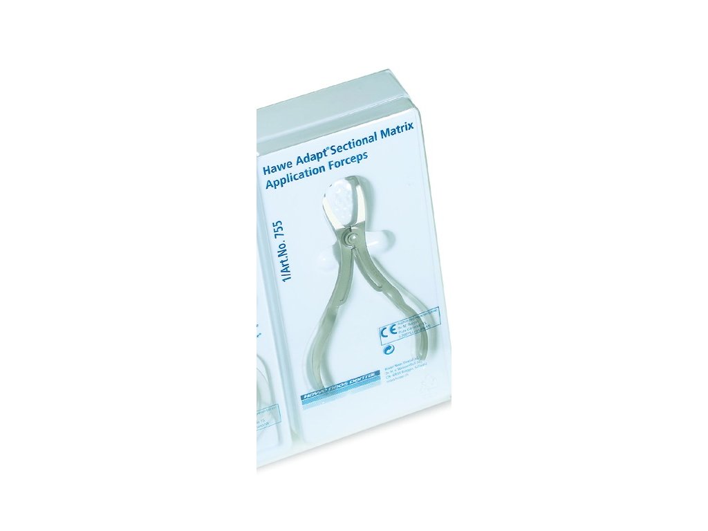 Aplikační kleště na aplikaci koferdamových spon a matricových systémů.