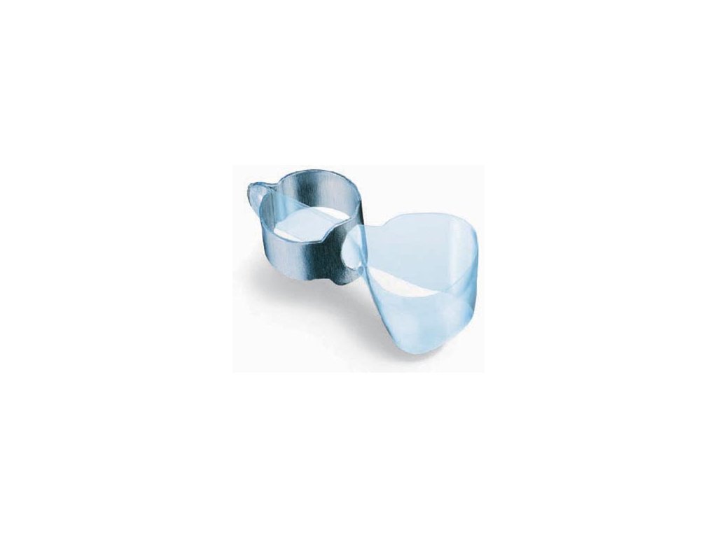 Transparentní tvarované matrice pro distální úsek s integrovaným upevňovacím zařízením.