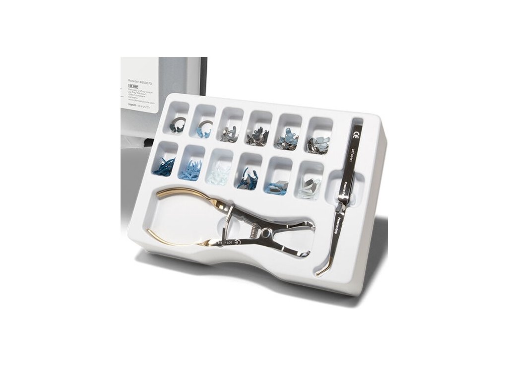 Vylepšený systém parciálních matric pro snadné použití v distálním úseku. Součástí balení je také speciální pinzeta na uchycení matric, kleště speciálně upravené pro bezpečné uchycení kroužku.
