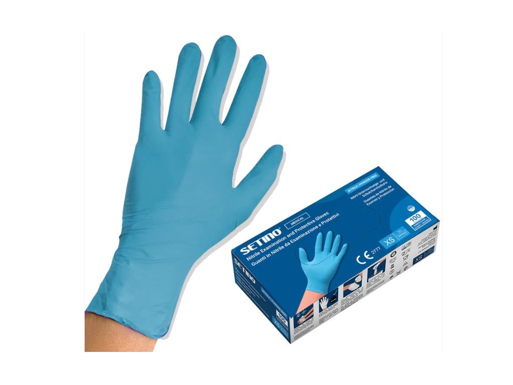 Vyšetřovací rukavice s mikrotexturovaným povrchem na kocích prstů pro lepší manipulaci s nástroji.