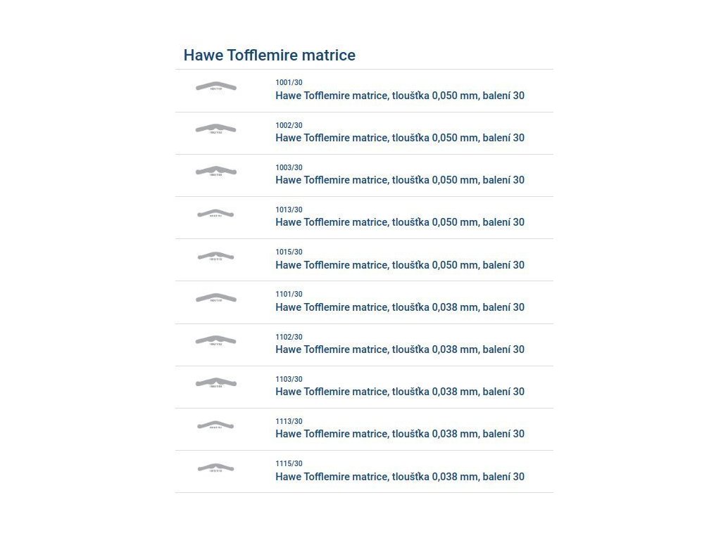 Tofflemire tvarované matrice tloušťka 0,038 mm.