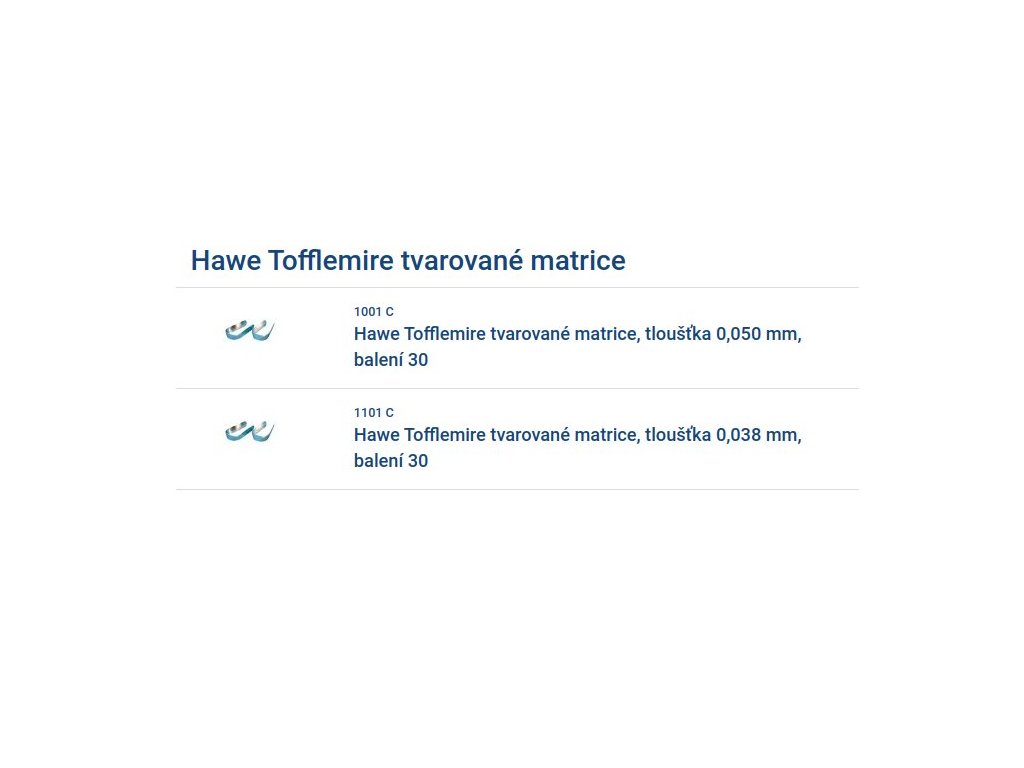 Tofflemire tvarované matrice tloušťka 0,05 mm.