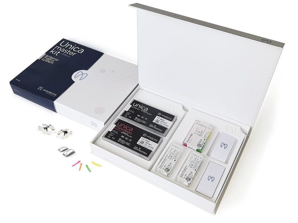 Unica minideep anterior je ideální matrice pro zhotovení přímých výplní kavit III., IV. a V. třídy a estetických rekonstrukcí, jako jsou přímé stratifikované kompozitní fasety a modelace tvaru horních středních řezáků.